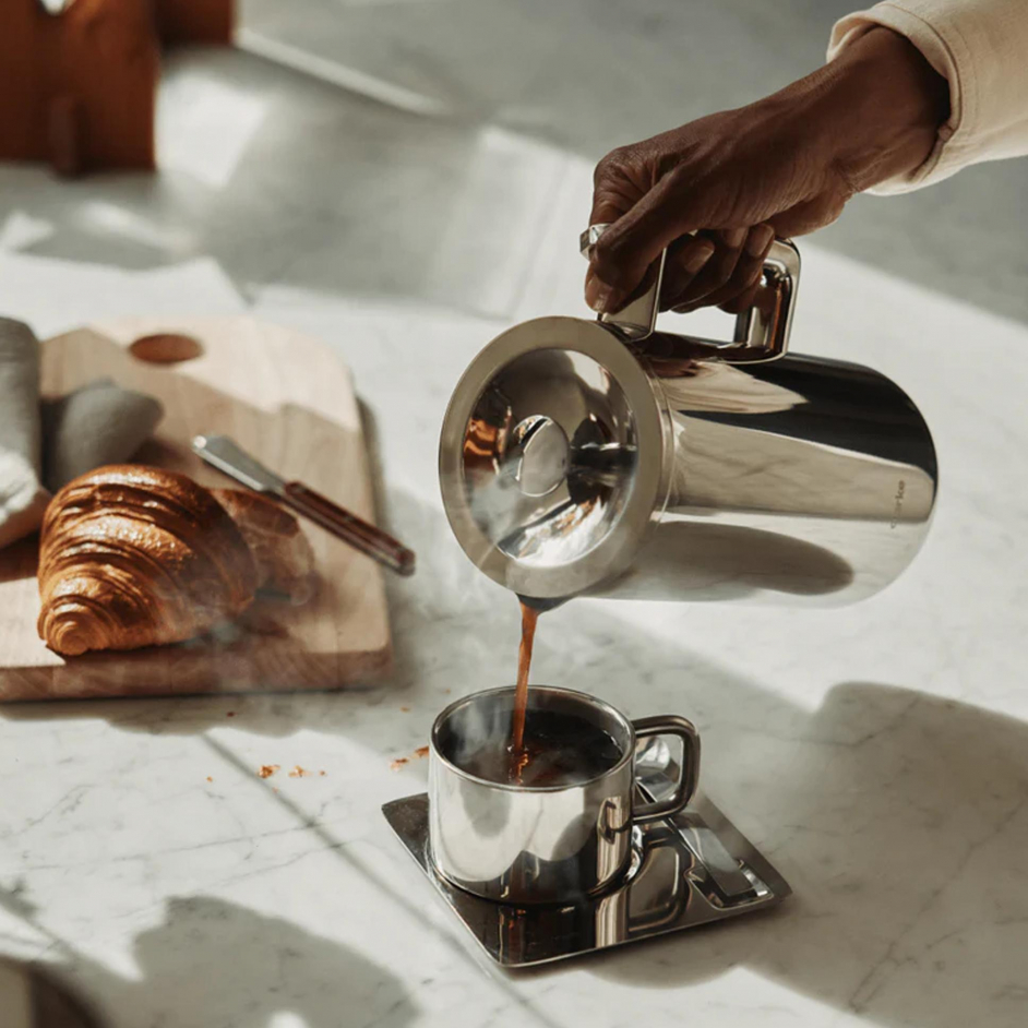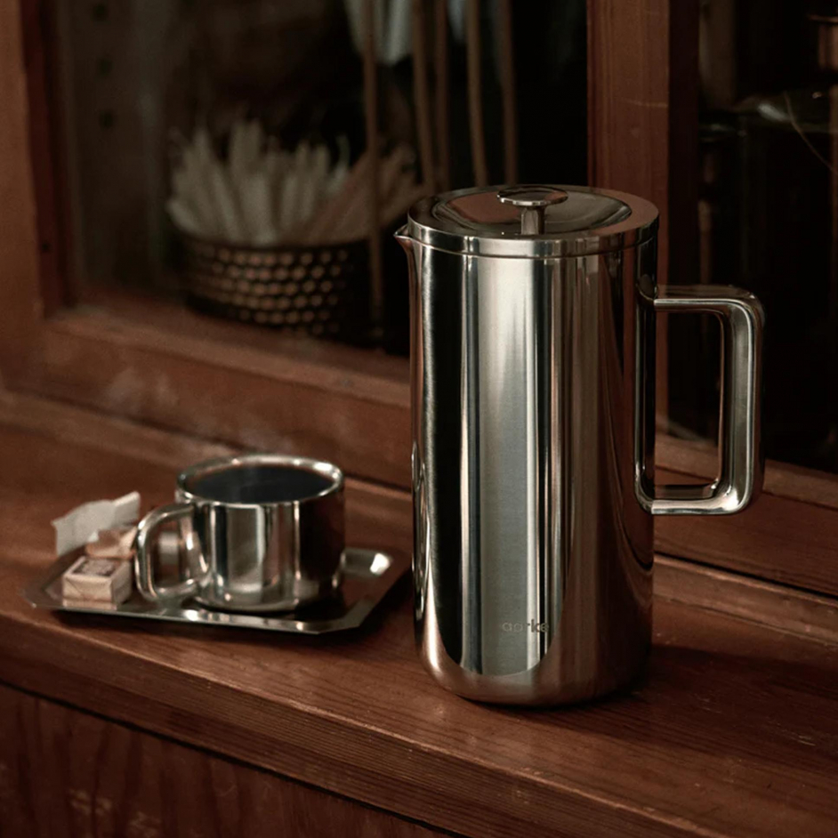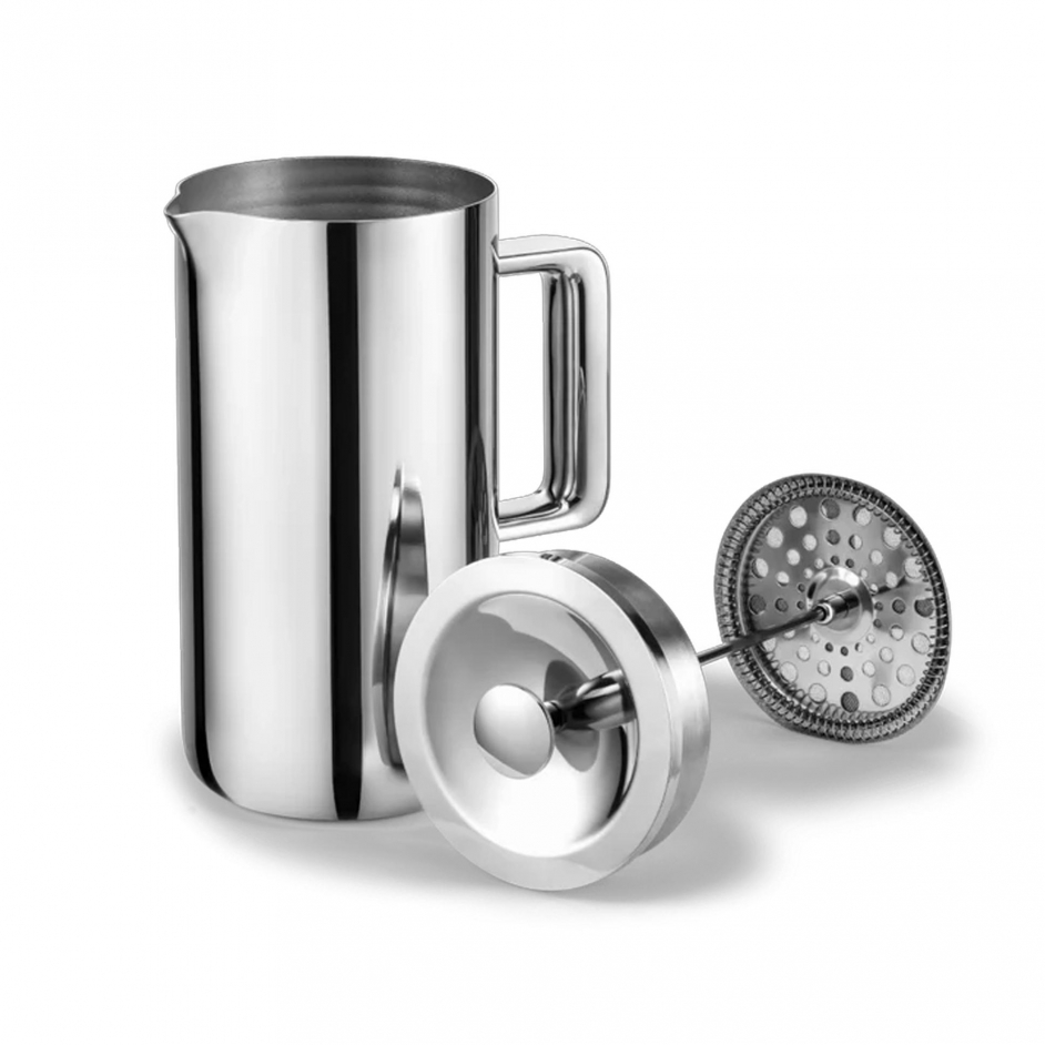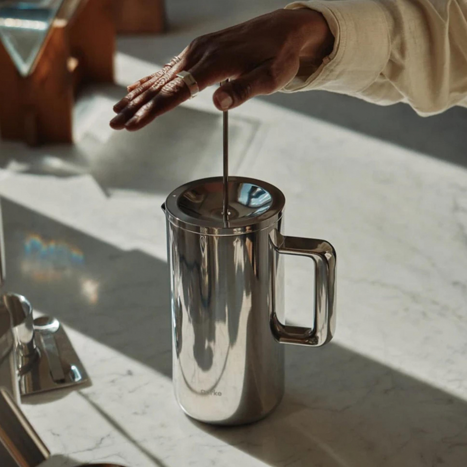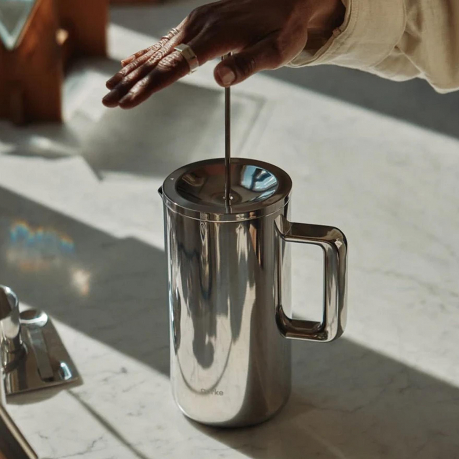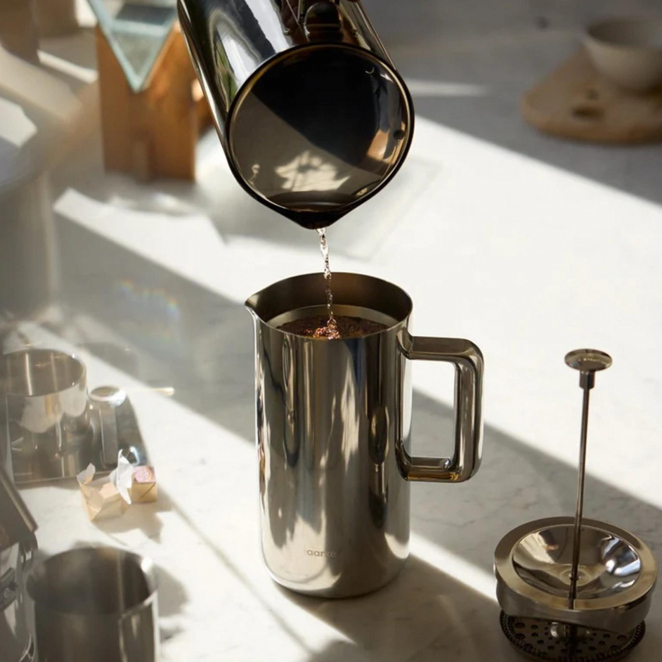 De Aarke French Press is voorzien van een dubbelwandige, vacuümgeïsoleerde constructie die ervoor zorgt dat je koffie tot wel drie uur lang op temperatuur blijft, zonder dat de buitenkant heet aanvoelt. Dit slimme ontwerp combineert warmtebehoud met gebruiksgemak en veiligheid, waardoor je op elk moment kunt genieten van een perfect warme kop koffie. De koelblijvende buitenkant en solide roestvrijstalen afwerking maken het product bovendien duurzaam en ideaal voor dagelijks gebruik.