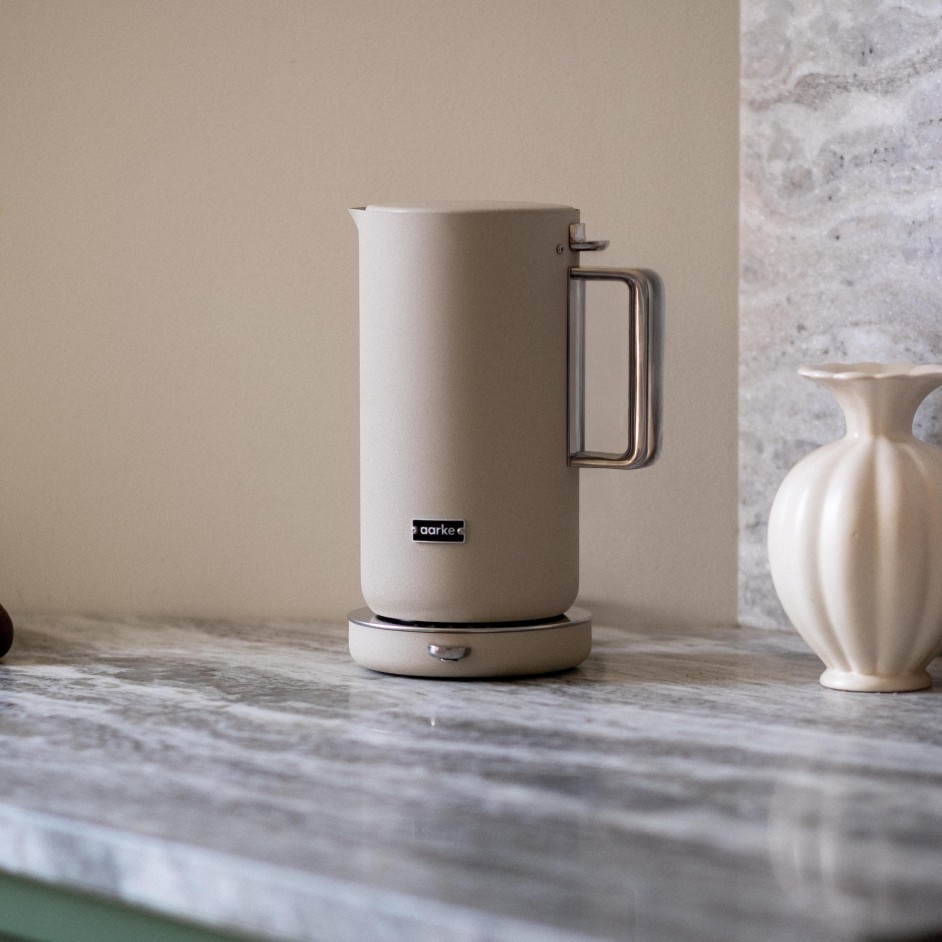 Het dubbelwandige ontwerp dat de warmte vasthoudt, maakt van de Aarke roestvrij stalen waterkoker een energiezuinige en uitzonderlijk stille waterkoker.