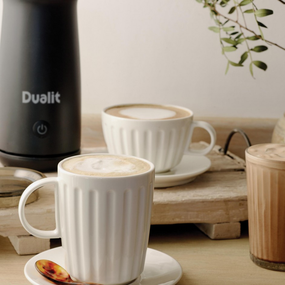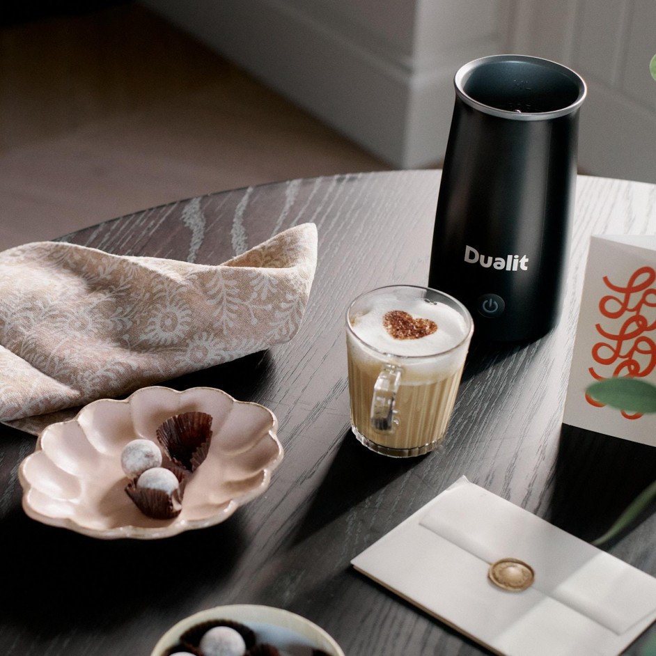 Met de Hot Chocolate Maker & Milk Frother kunt u thuis elke dag genieten van warme chocolademelk van cafékwaliteit. Maak binnen enkele minuten fluweelzachte warme chocolademelk die zelfs de beste koffiebars naar de kroon steekt! Dankzij de krachtige motor en Dualits gepatenteerde VortecS®-technologie mengt dit apparaat melk en chocolade vakkundig tot een perfect gladde, chocoladeachtige drank. Het unieke VortecS®-systeem creëert een krachtige, supersnelle draaikolk die zorgt voor een grondige menging en een consistent zijdezachte textuur. U hoeft geen speciaal merk te kopen — voeg gewoon uw favoriete chocolade toe en de Hot Chocolate Maker & Milk Frother mengt deze tot een luxueuze traktatie. Perfect voor gezellige avonden of een speciale verwennerij: de Hot Chocolate Maker & Milk Frother met VortecS®-technologie levert binnen enkele minuten warme chocolademelk van cafékwaliteit.